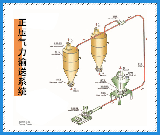 正負(fù)壓稀相輸送,料氣比大約為0~30,為粒體懸浮于氣流中,可根據(jù)正負(fù)壓各自輸送距離與產(chǎn)量來合理選定出動(dòng)力源風(fēng)量與風(fēng)壓,亦可根據(jù)不同工況,組合成不同形式的正負(fù)壓一…